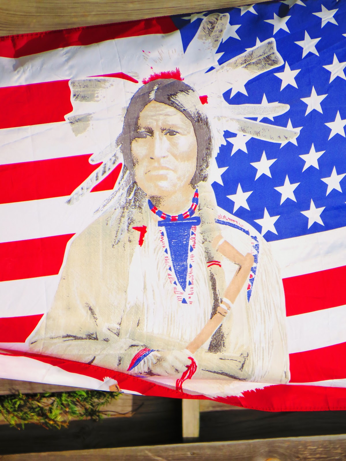Everyone has their flags out for the Independence Day. As we were driving, I spotted this flag in a front yard a few blocks away. Any thoughts?