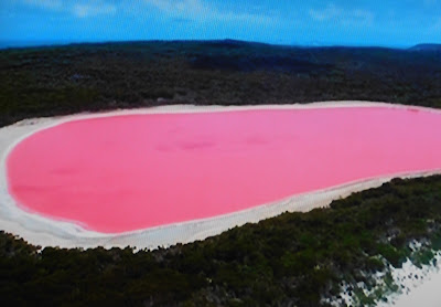 First, I will not be blogging all day on Thursday, as we will be gone for the day. Welcome to Lake Hillier, on Middle Island off the coast of Australia. and you are seeing right, it is bright pink! I took these photos from the T.V. show called Impossible Planet, and I did not change the color.