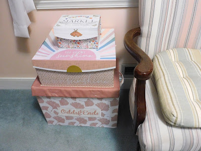 I also have these pretty peach storage boxes and a peach striped chair.