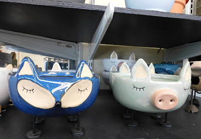Ha...I love the sign. So true!! These animal pots are adorable and unique. The green whale pot is my favorite. Of course....I think they ar all cute.